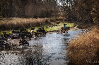 Las vacas de Alicia Chico abrevando en el descansadero de San Benito (río Júcar, Villanueva de la Jara, Cuenca).